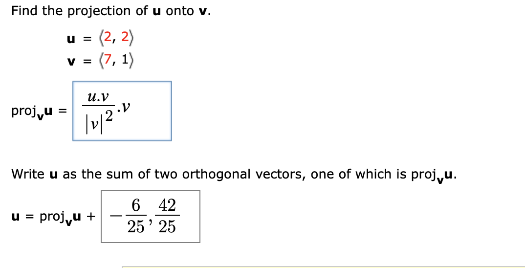 Solved Find The Projection Of U Onto V 2 2 7 1 U V Chegg Com